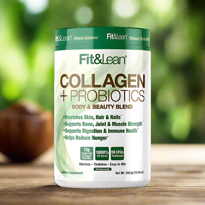 عززي جمال جسمك وجمالك مع Fit & Lean® مع الكولاجين + البروبيوتيك. البروتين هو أساس أي جسم صحي ، والكولاجين هو الأكثر وفرة في الجسم ، حيث يشكل أكثر من 30٪ من إجمالي بروتينات الجسم. يمكن أن يوجد الكولاجين في شعرك ، وبشرتك ، وأظافرك ، وعضلاتك ، وعظامك ، ومفاصلك. يساعد الكولاجين أيضًا في تعزيز الإحساس بالشبع وتقليل الجوع. يحتوي Fit & Lean Collagen + Probiotics على 11 جرامًا من ببتيدات الكولاجين عالية الجودة التي تتغذى على الأعشاب. بالإضافة إلى أن هذه التركيبة المتطورة للجسم والجمال تحتوي أيضًا على 1000 ٪ من القيمة اليومية لاحتياجات الجسم من البيوتين ، وهو إنزيم مساعد مهم لدعم وتغذية الشعر والبشرة والأظافر. وأخيرًا ، يحتوي أيضًا على 5 مليار وحدة من البروبايوتيك ، من 5 سلالات فريدة من البكتيريا النافعة. يمكن أن تساعدك هذه "البكتيريا النافعة" في بناء ميكروبيوم صحي ، يمكنه تعزيز و تحسين عملية الهضم وصحة المناعة.