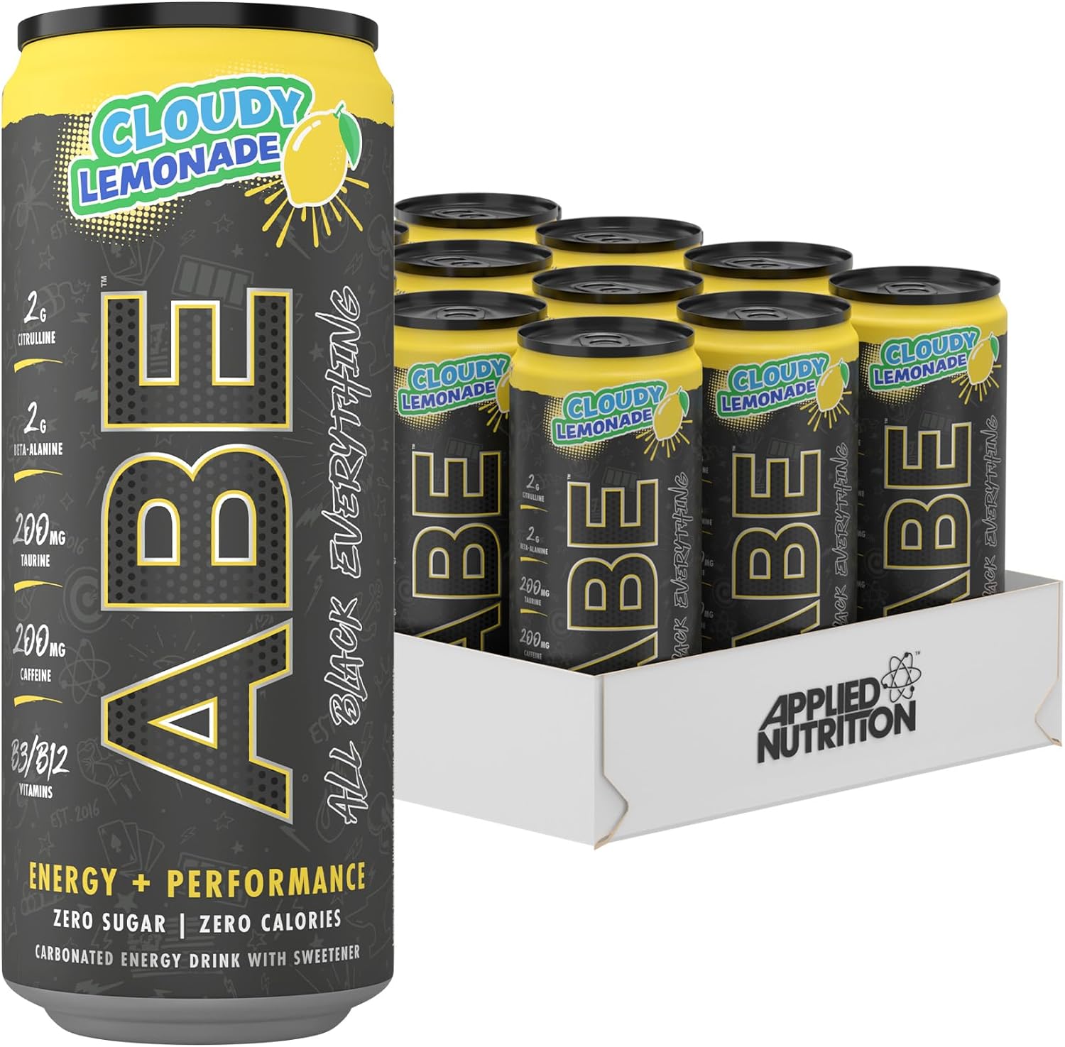 Applied Nutrition, ABE Pre Workout Cans - Energy + Performance Drink, (Pack of 12 Cans x 330ml) (Cloudy Lemonade)