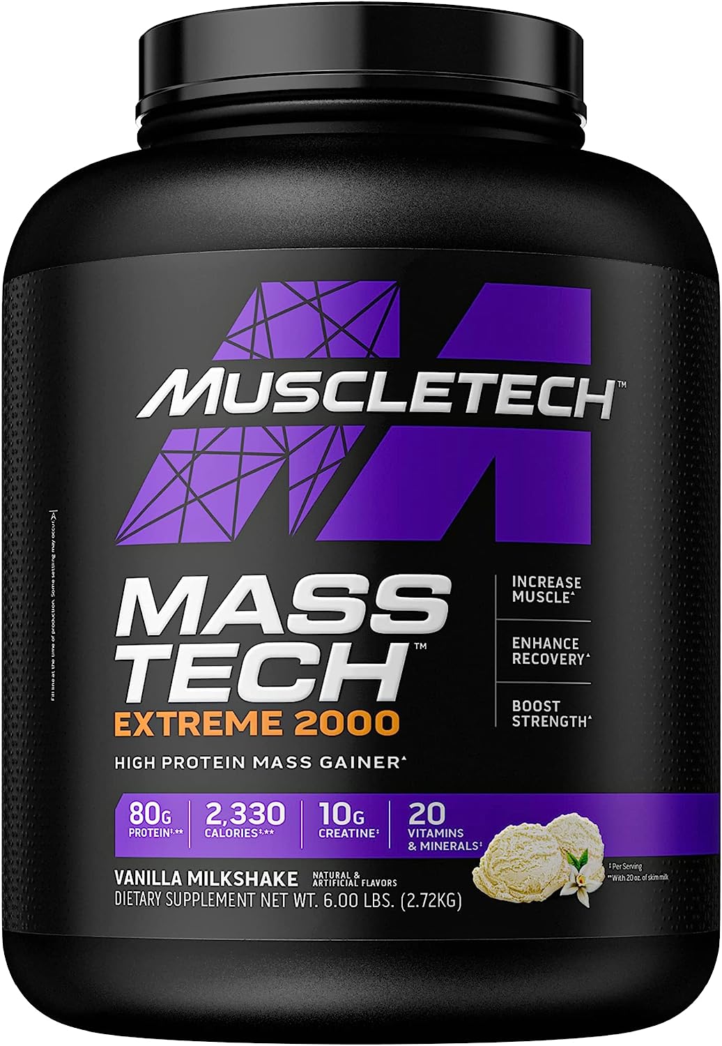 استعد لتحقيق مكاسب هائلة مع مُكسب الكتلة العضلية المتطور والفعال هذا. في كل جرعة من ®Mass-Tech Extreme 2000 (عند مزجه مع 20 أونصة من الحليب منزوع الدسم) فإنك تحصل على 80 جم من البروتين، وأكثر من 400 جم من الكربوهيدرات، وأكثر من 2000 سعر حراري، بما في ذلك 8.4 جم ل-ليوسين، و10 جم كرياتين و20 نوعًا من الفيتامينات والمعادن. يحتوي ®Mass-Tech Extreme على كل ما تحتاج إليه لبناء عضلاتك، وزيادة حجمها، وتحقيق أهداف القوة هذه.