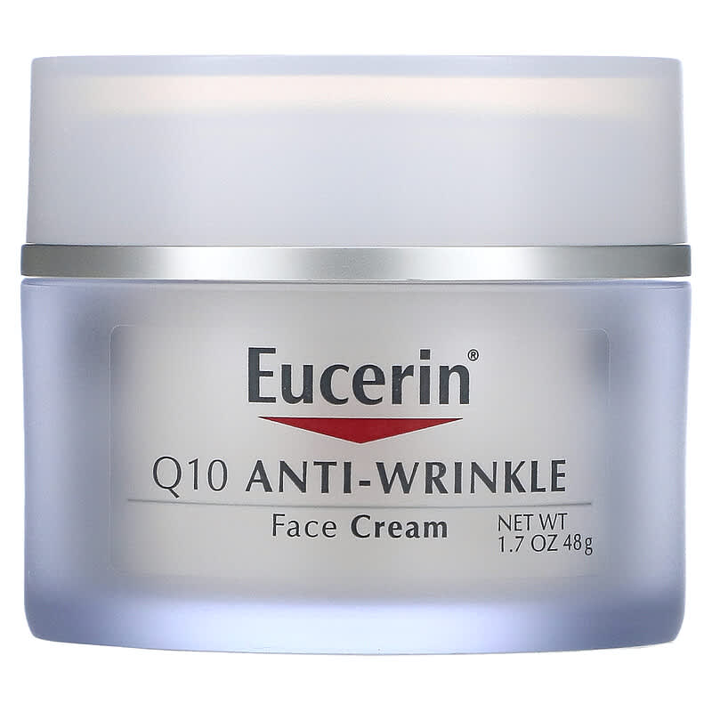 كريم الوجه المضاد للتجاعيد Eucerin Q10 هو كريم مرطب مضاد للتجاعيد مصنوع للبشرة الجافة والحساسة. تم تصميمه خصيصًا ليكون غير مهيج للبشرة ويقلل بلطف مظهر التجاعيد وعلامات الشيخوخة.